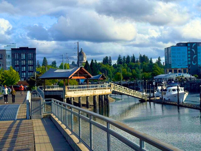 The Puget Sound ends a few blocks from the Capital. It’s a beautiful part of downtown Olympia. Daisy wanted to walk down to the water front so that is where we headed. There just happened to be a wooden boat festival underway when we got the water! There were hundeds of venders and lots of people and boats.