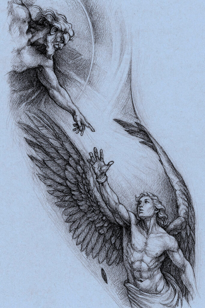 Anger, anger. Jealousy. Hatred of God, his Father, spiteful and bitter for doing this to him. Jealous of God’s goodness and of His power and of His control of all things and of His awesomeness of the Highest Throne of Heaven.